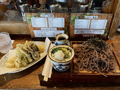 自分は、峠の蕎麦屋では、年がら年中、エビ2本入っている『天ざる』1,300円です。大盛り2玉+100円、中盛り1.5玉+50円で、当然大盛りです。糖尿病の医師団にも「これだけは大盛り食べますからね」と公言しています。月に一回程度、自転車🚲で通う病院帰りの贅沢です。峠の蕎麦屋は、自転車でチンタラ片道2時間の中間にあります。
