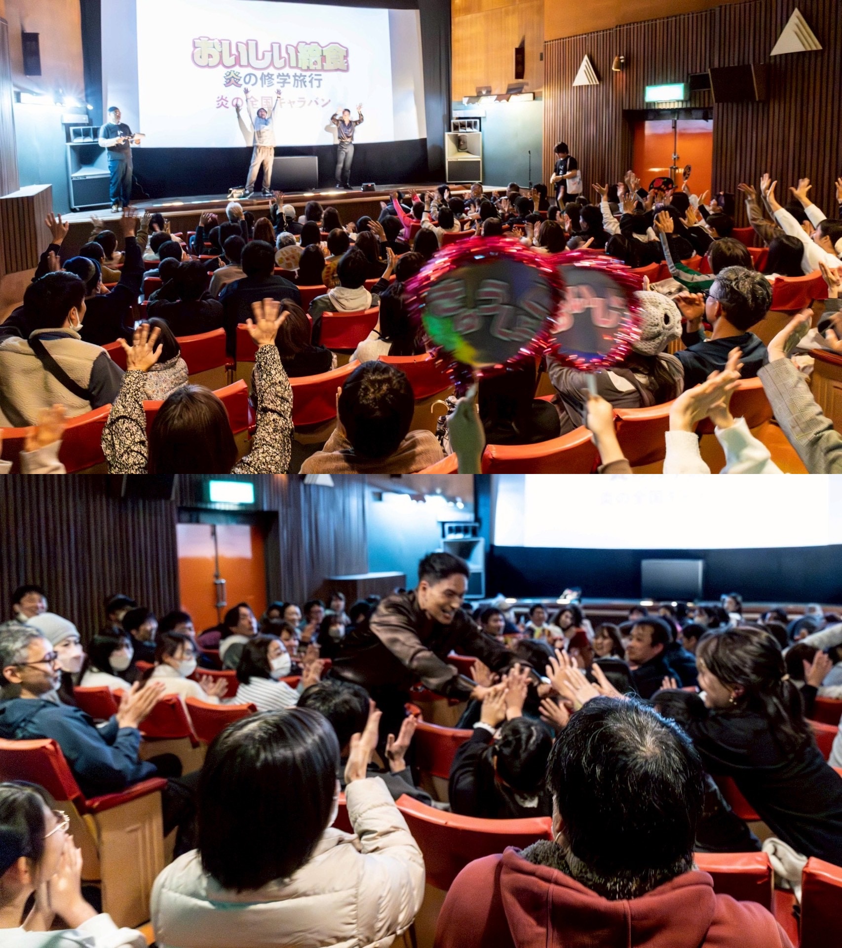 【ご注意】舞台挨拶はこの日の17:00~回上映後、30分ほど行います/この舞台挨拶付き上映は全国一律で特別料金2200円になります/立ち見不可につき、この回のみ入場券の事前販売を行います(※完売しました)。/その他撮影不可など注意事項は『おいしい給食 炎の修学旅行』公式HP内「炎の全国キャラバン特設サイト」内の他地域での「チケット情報」記載の「舞台挨拶における注意事項」と同様ですので、ご参照下さい。