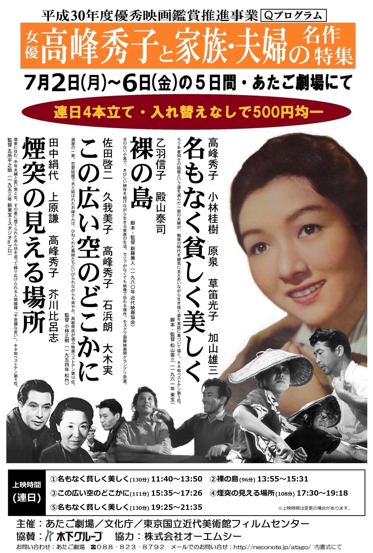 優秀映画鑑賞推進事業Qプログラム [上映作品] 女優高峰秀子と家族・夫婦の名作特集