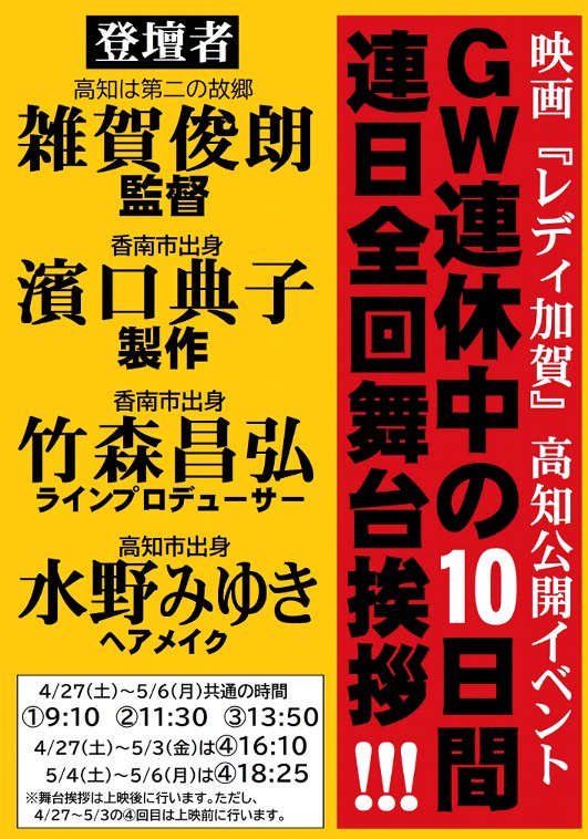 レディ加賀 GW連休10日間連日・全回舞台挨拶実施!
