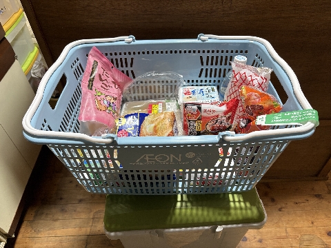持ち手が赤色で黒色のカゴをマルナカ奈半利店がイオングループになった当初(2011年?)から使っていましたが、カゴ本体の掴み部分が割れて、ボンドで繋げていました。レジにて「水色のカゴなら無料で交換できますよ」とのことだったのでお願いしました。