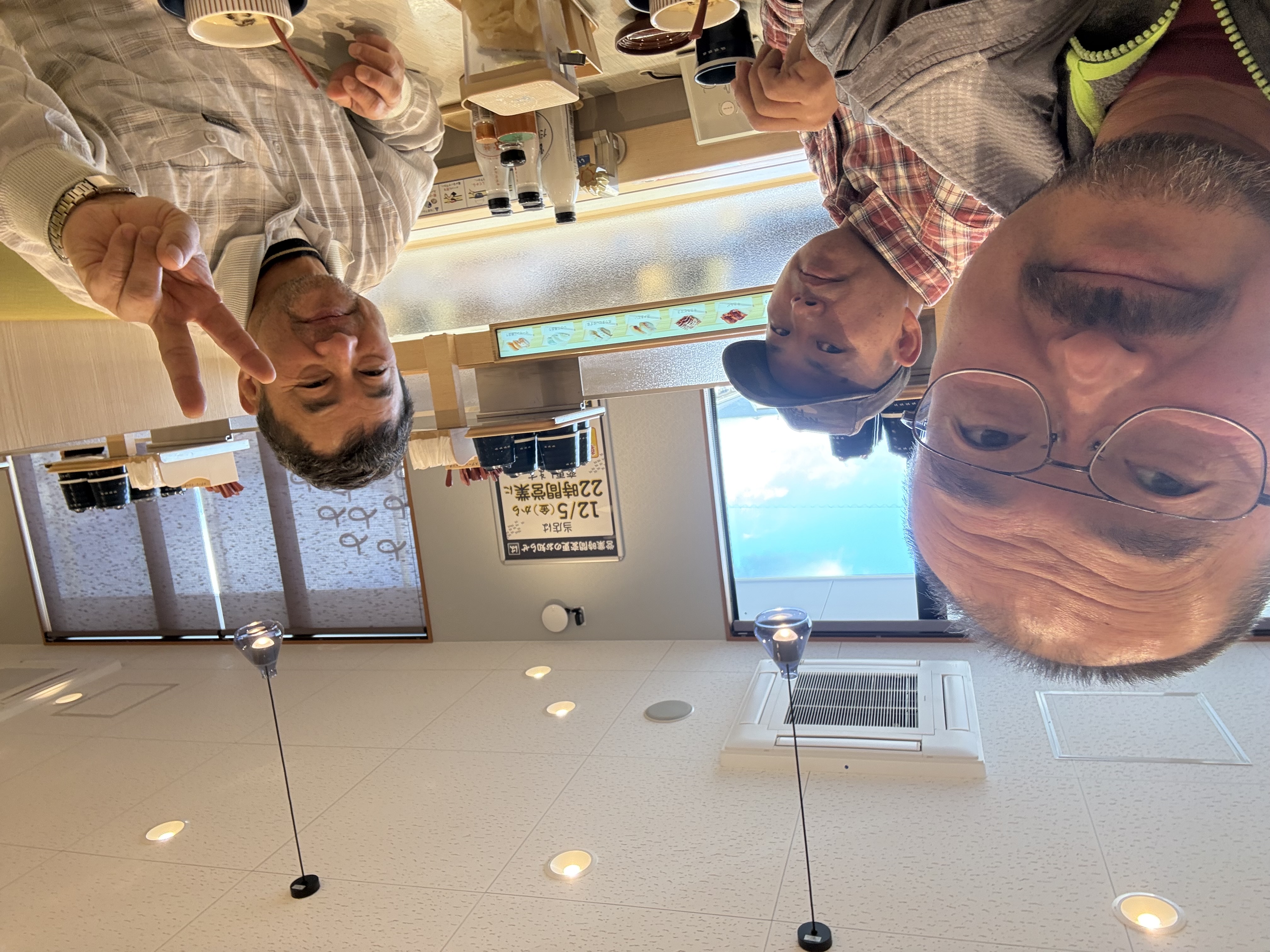 やっと出発できましたが、どちらのお店も営業してません。ぐるっと1周して、黒岩さんの近所の『はま寿司』に。