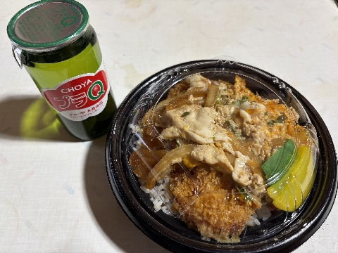 さすがに、疲れました。ご褒美に、カツ丼と梅酒です。一口一口が、胃に染み渡ります。