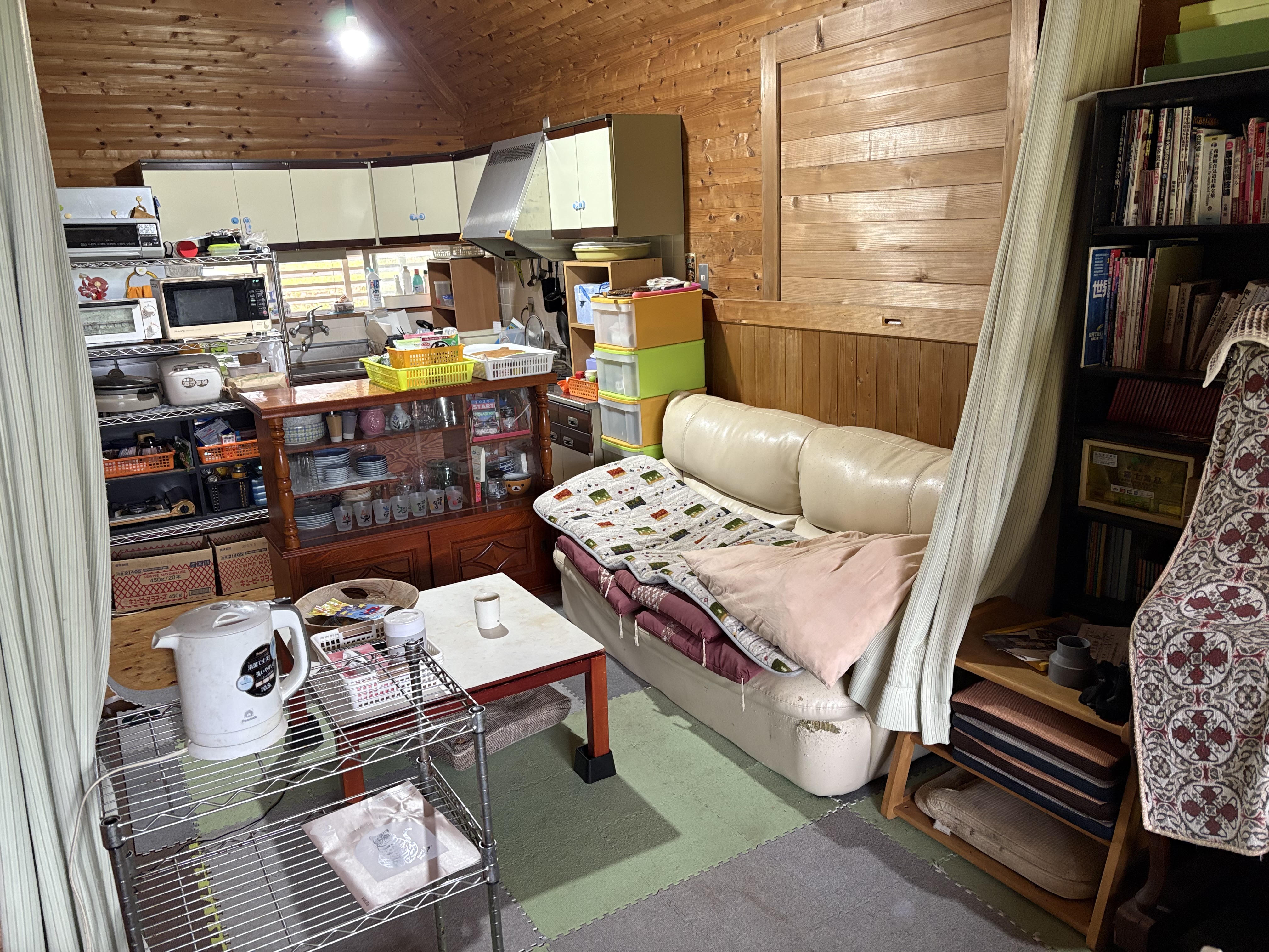 昨晩の夕食会に合わせて、キャビネットを1つ、ピアノの横に移動して、リビングとキッチンを広くしました。コタツ敷が長く取れます。