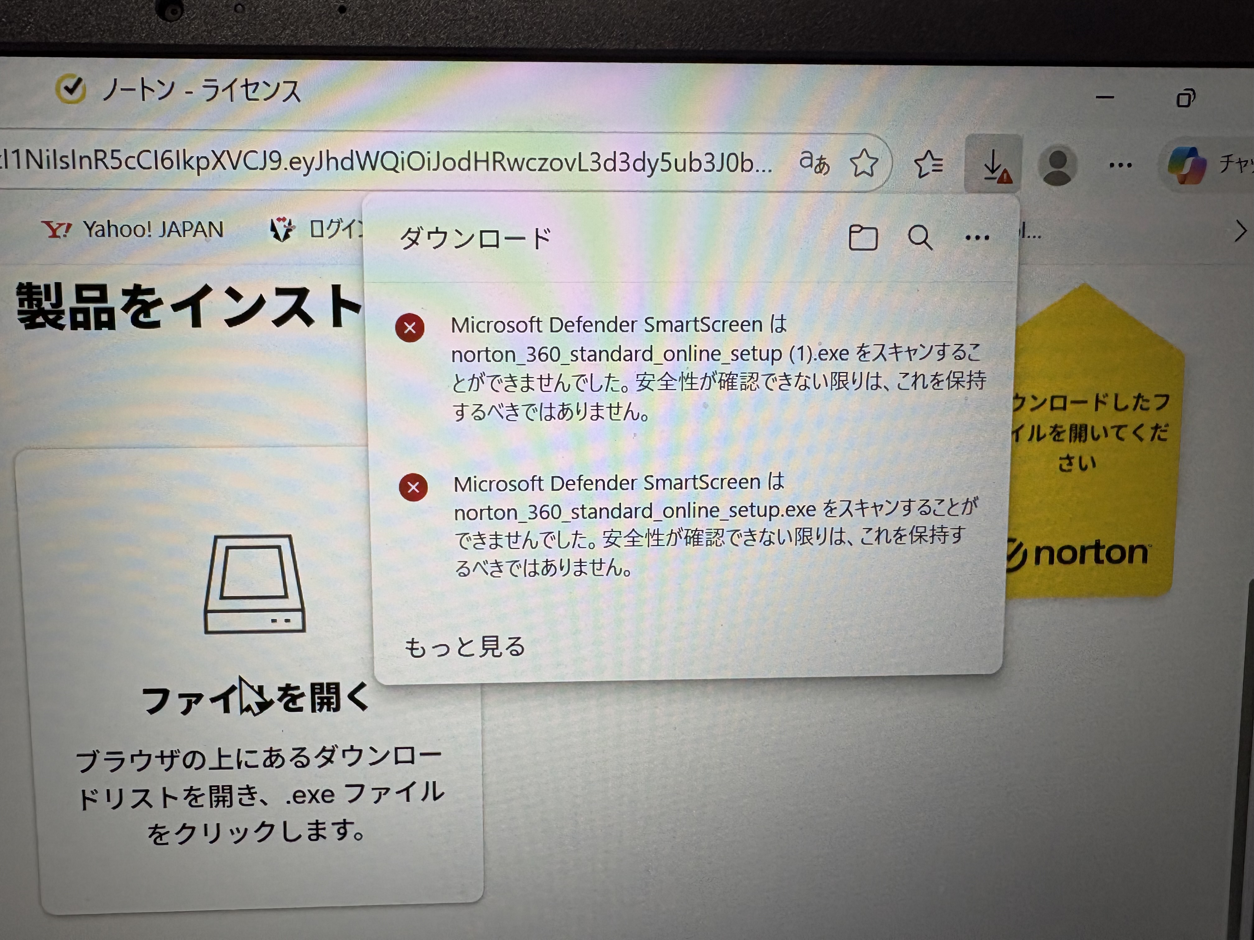 なお、以前は問題なかったのですが、Windows11パソコンにおいて、『Microsoft Edge』で進めると、ページが無いとか、ダウンロード段階で『Microsoft Defender』が邪魔する(写真)ので、『Google Chrome』を利用して下さい。