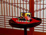 甲冑箱を台座に据えた雛人形の間を楽しんで下さい。